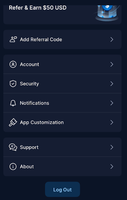 Once the sign-up process was complete, we found the Crypto.com app to be smooth and easy to use. Interestingly, it took some digging to figure out how to log out of the app. You have to go to the menu, look for the settings button, click through, and then scroll to the bottom to find the logout button.