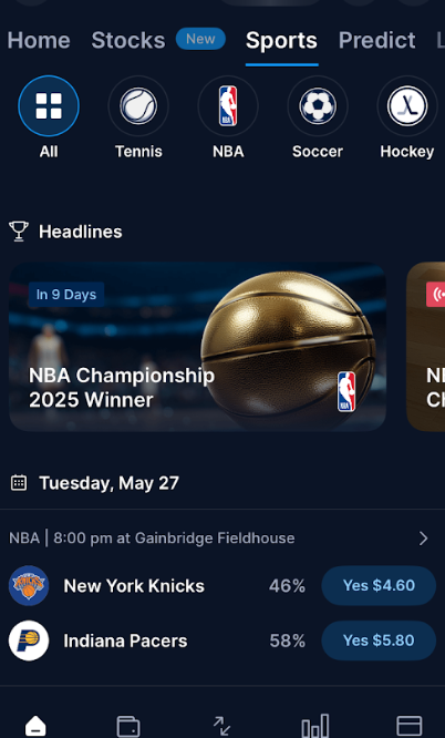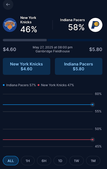 | NBA | NBA Eastern Conference Championship 2025 Winner | -Indiana PacersYes: $66.25. No: $36.25 |